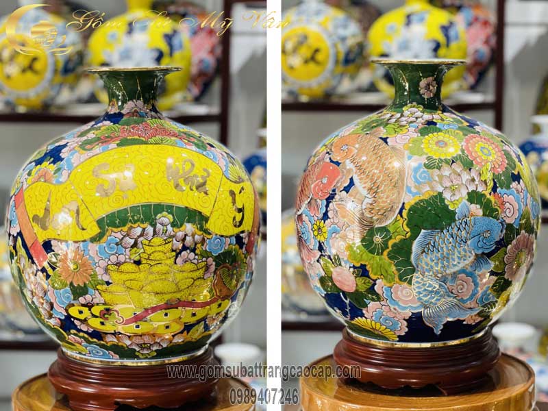 Bình hút tài lộc vẽ Đôi cá chép và Chữ Vạn Sự Như Ý .