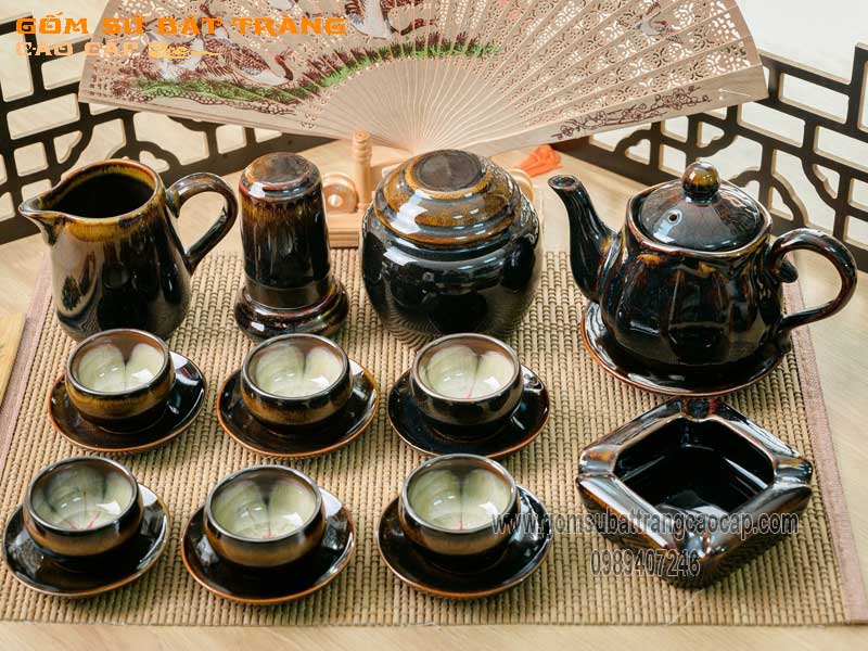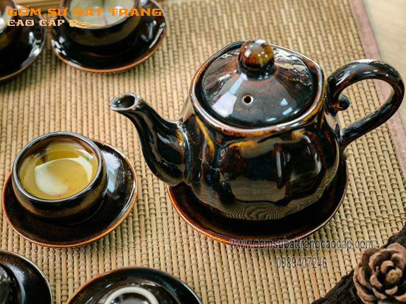 Tên sản phẩm: Ấm chén dáng sen men hổ phách lòng hoa